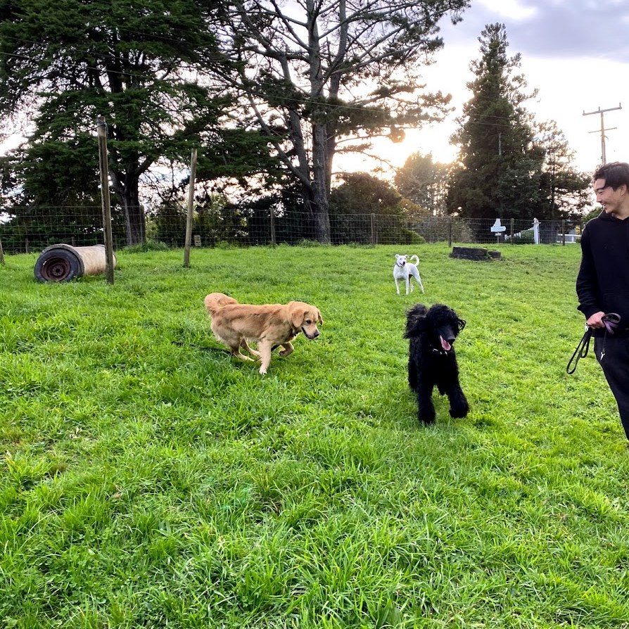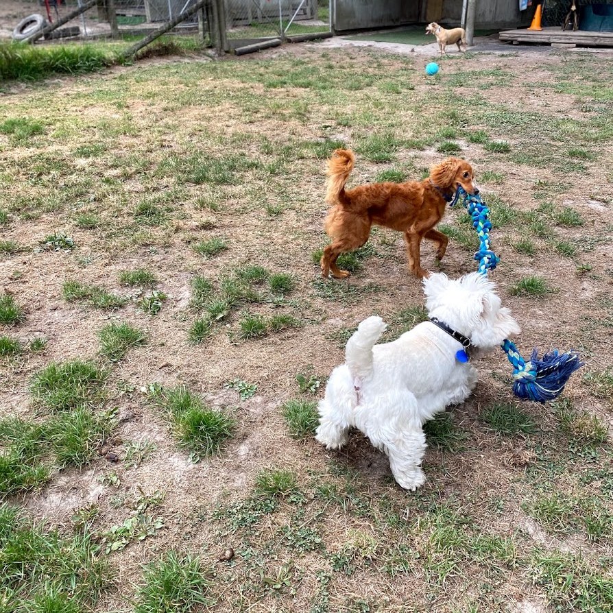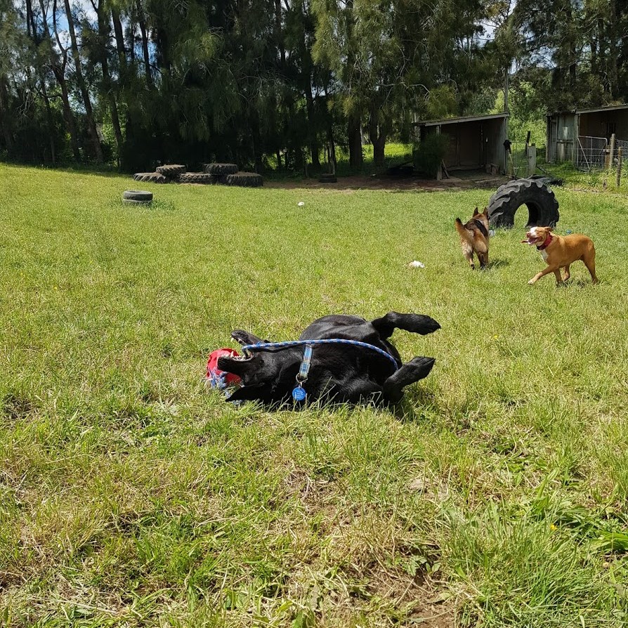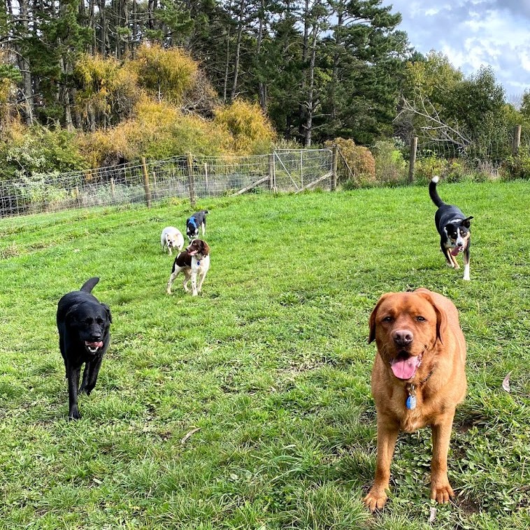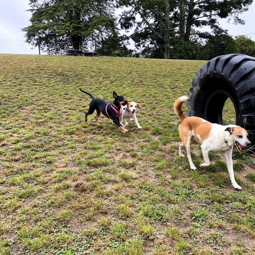 Our dogs spend the day in covered yards, open to the fresh country air, with toys, beds and tables to jump and climb on with their canine friends. During their midday pack walk, your dog will get to play, run, sniff, chase and fetch till their hearts content with 10-15 other friends in our secure off-lead playtime paddock!