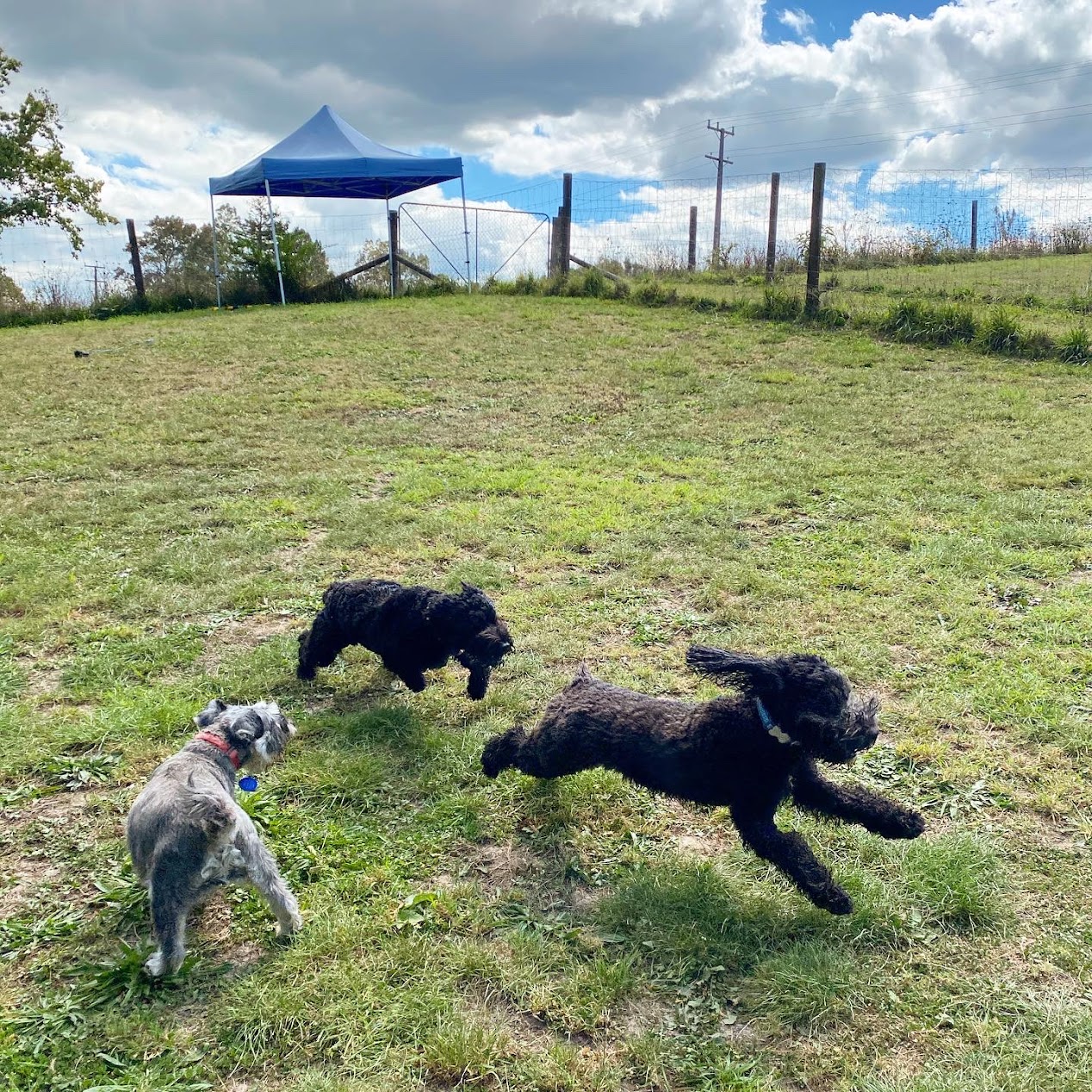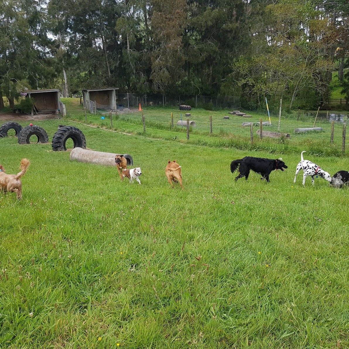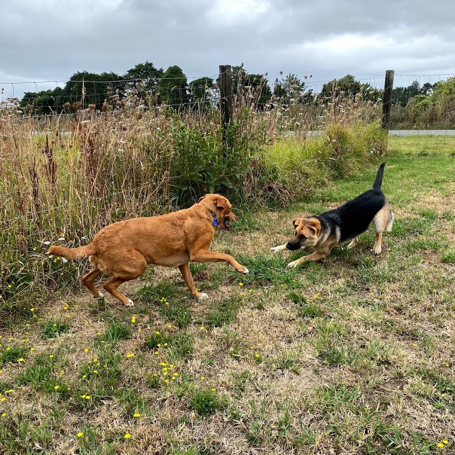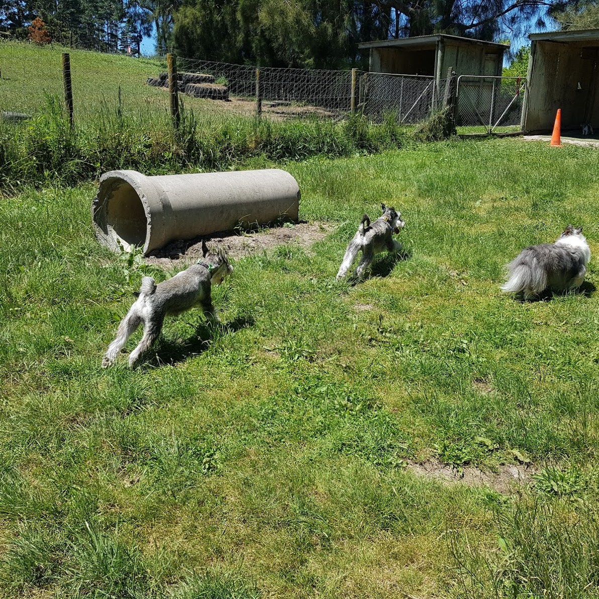 Our dogs spend the day in covered yards, open to the fresh country air, with toys, beds and tables to jump and climb on with their canine friends. During their midday pack walk, your dog will get to play, run, sniff, chase and fetch till their hearts content with 10-15 other friends in our secure off-lead playtime paddock!